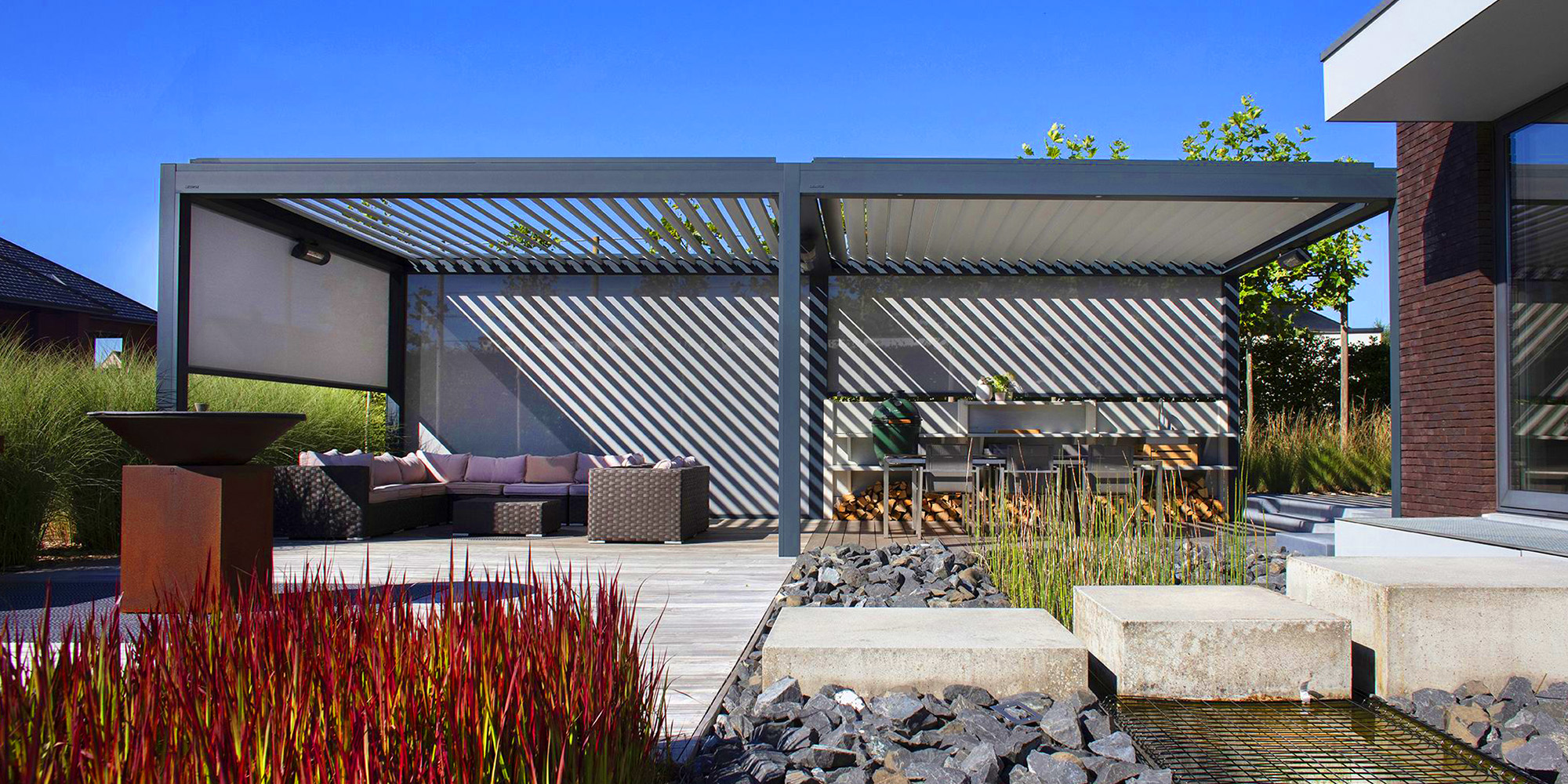 Naast de najaars- en winteracties ontvangt u nu ook 5% korting op de Brustor B128P en B128 XL. Een stijlvolle terrasoverkapping met lamellendak die moeiteloos aansluit bij elke woning.