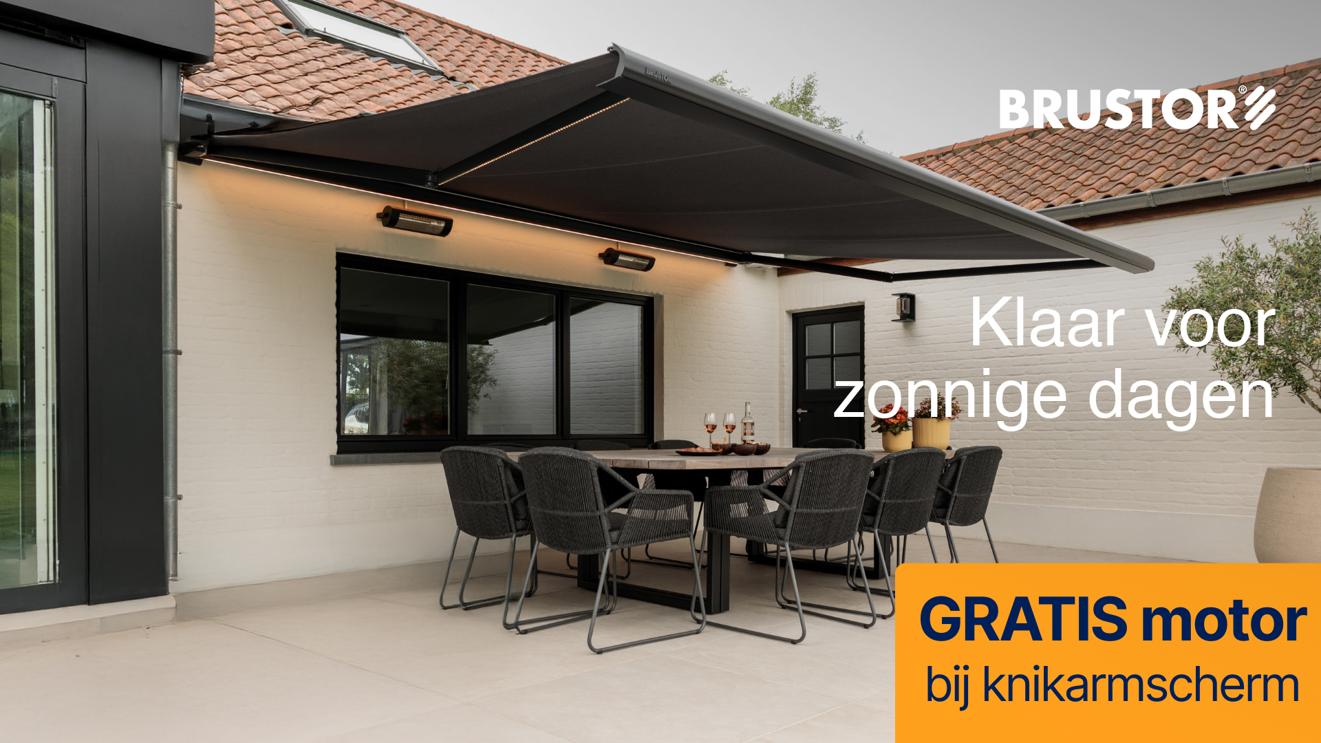 Met een Brustor-luifel met knikarm geniet je comfortabel van schaduw en verkoeling op zonnige dagen. Profiteer nu van een gratis motor t.w.v. € 320 (incl. btw) bij aankoop van een luifel. Vraag naar de voorwaarden.