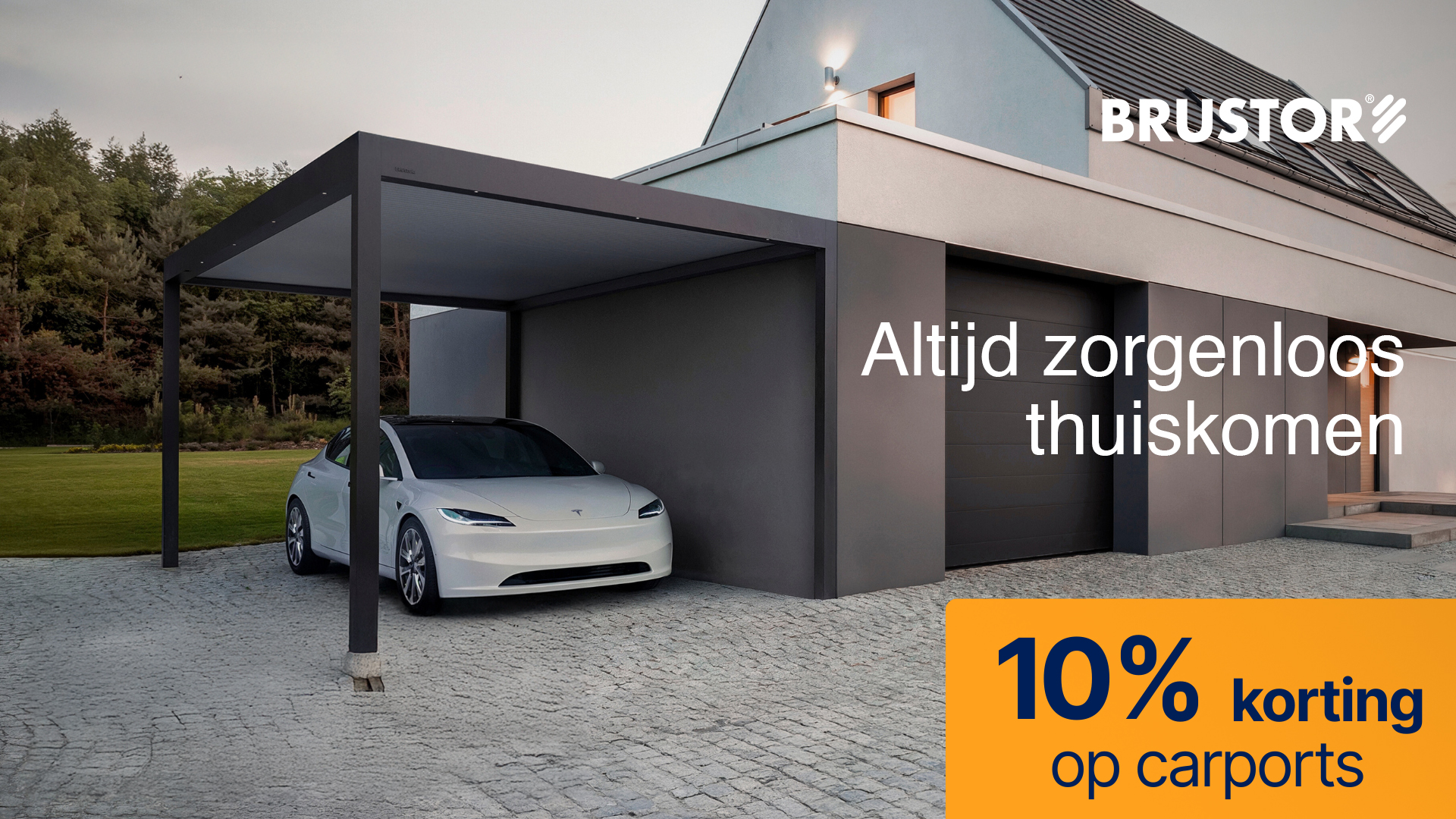 Met een stijlvolle Brustor-carport staat je auto altijd beschermd tegen regen, hagel en felle zon. Profiteer nu van 10% korting op carports, op de B910 module + ledopties. Vraag naar de voorwaarden.